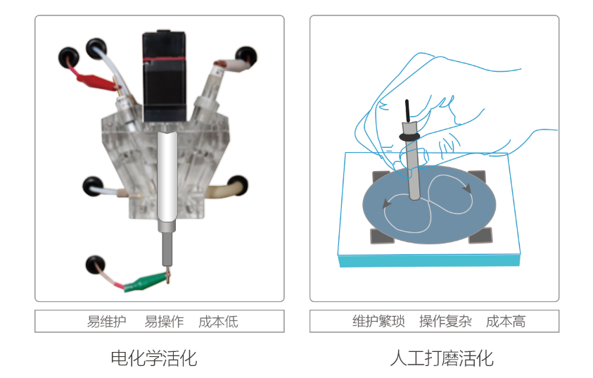 采用自主研發(fā)的純化學電極處理技術,解決了電極需要每周人工打磨的問題, 電極的維護周期大于3個月,極大的降低了運營成本。