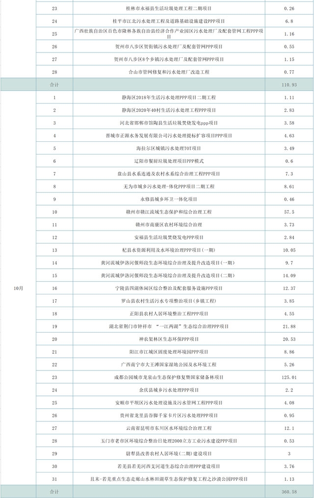 2020年11月27日,財(cái)政部PPP中心公開了2020年10月發(fā)布的106個(gè)新入管理庫項(xiàng)目。其中,有31項(xiàng)環(huán)保項(xiàng)目。