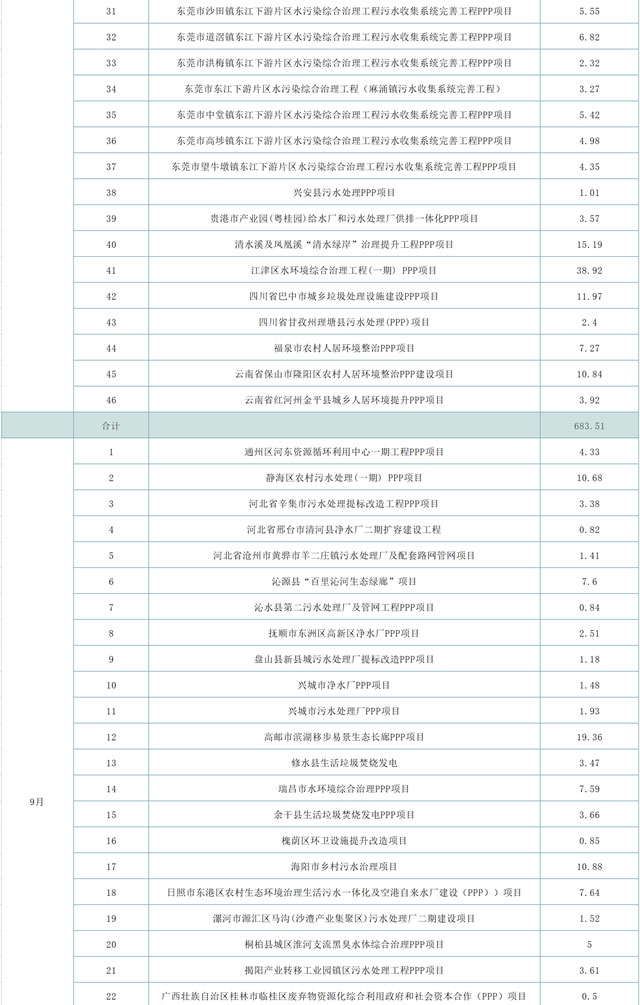 從表格中也能看出,水務(wù)項(xiàng)目依舊單體投資規(guī)模大,標(biāo)的頻出,入庫項(xiàng)目占據(jù)了很大比例。