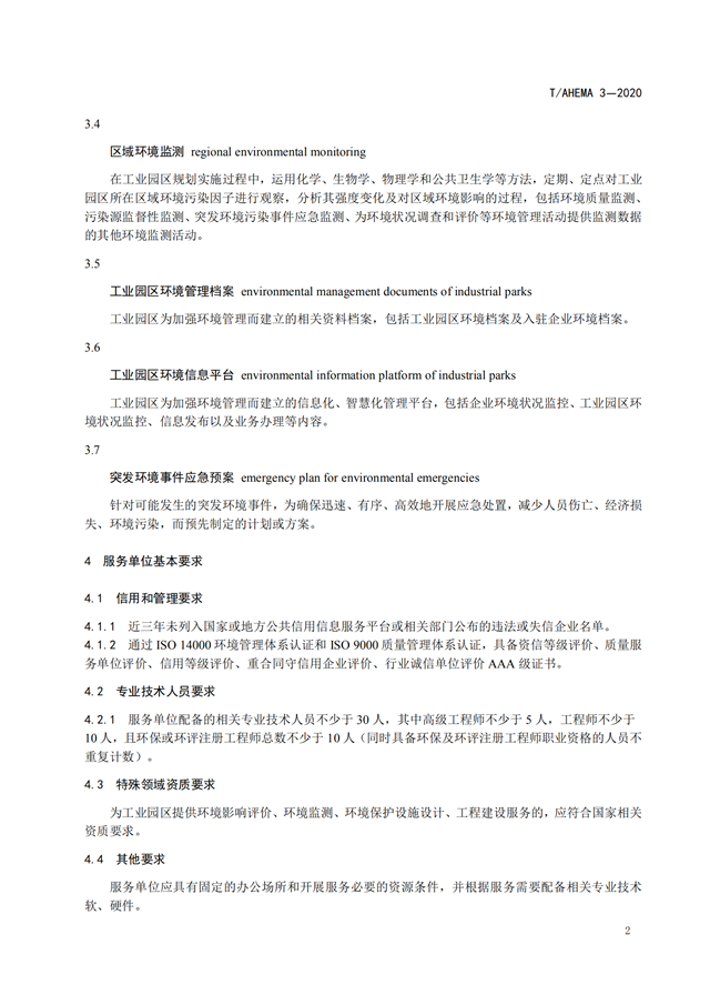 相關(guān)資料下載:T AHEMA 3-2020 工業(yè)園區(qū)環(huán)保管家服務(wù)規(guī)范.pdf