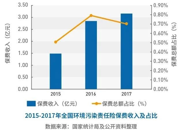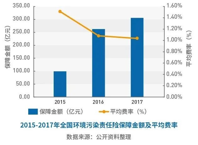 《報告》研究發(fā)現(xiàn),2015年至2017年間,中國環(huán)責險投保企業(yè)數(shù)量不斷增加,保費收入不斷增長,保險費率有所下降。然而,從全國范圍看,投保企業(yè)的數(shù)量占規(guī)模以上工業(yè)企業(yè)的比例仍不足5%,環(huán)責險保費收入占責任險保費收入仍不足1%,保險費率仍高于一般責任險的平均保險費率,投保規(guī)模有待提高,產品性價比有待進一步優(yōu)化。