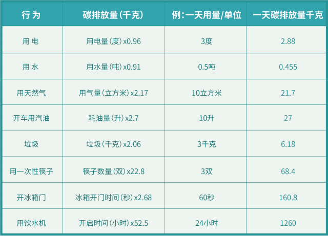 手冊(cè)中列舉了一些常見的生活行為排放的二氧化碳量: