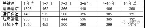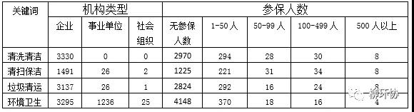 以參加社保的人數(shù)作為篩選條件按照四個關(guān)鍵詞分別進行檢索,可以得到超過500人交納社保的單一企業(yè),其中三個關(guān)鍵詞:清洗清潔、清掃保潔、垃圾清運分別有8家企業(yè);而環(huán)境衛(wèi)生關(guān)鍵詞下則只有4家。