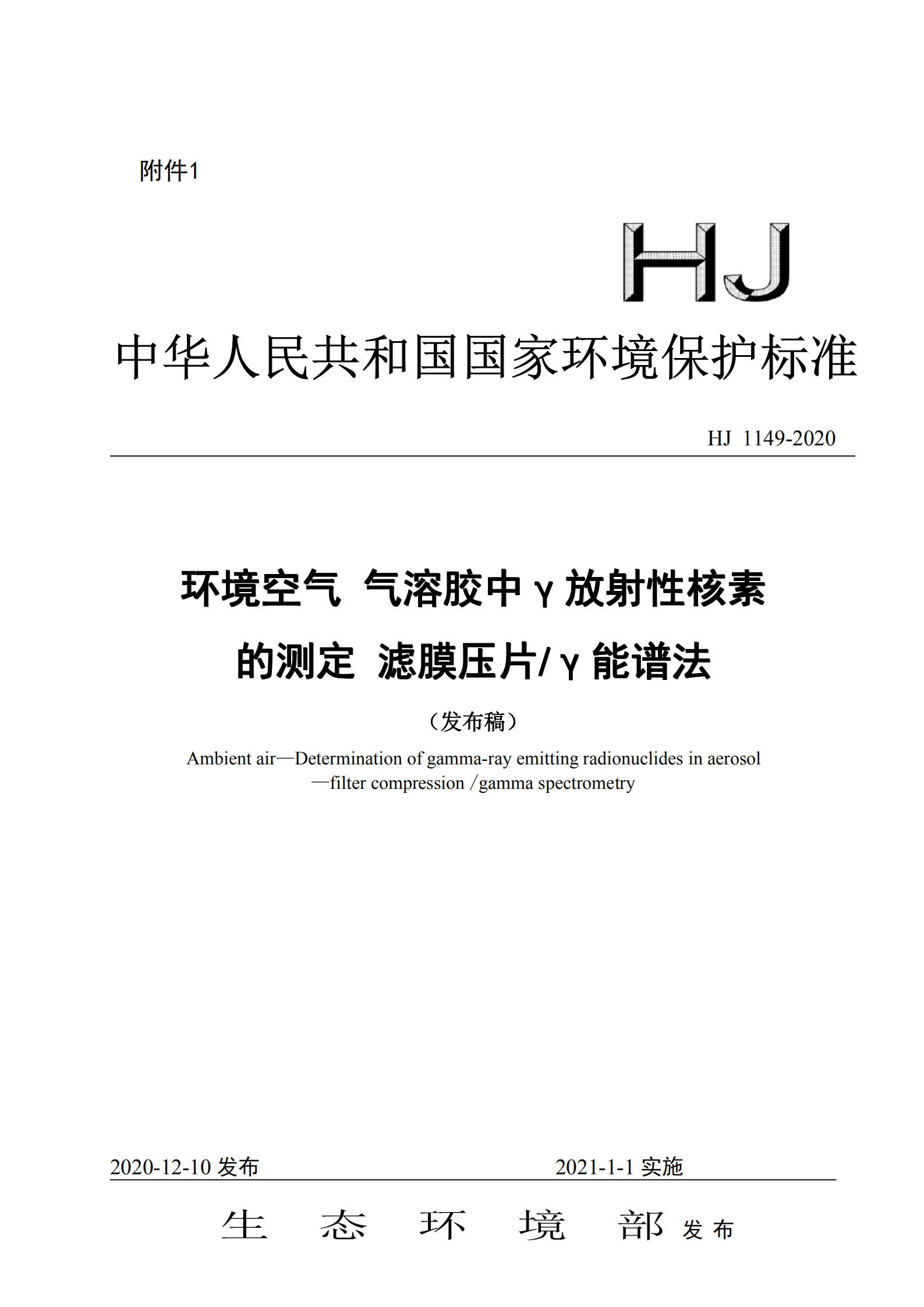 為貫徹《中華人民共和國(guó)環(huán)境保護(hù)法》和《中華人民共和國(guó)放射性污染防治法》,保護(hù)生態(tài)環(huán)境, 保障人體健康,規(guī)范環(huán)境空氣氣溶膠中γ放射性核素的測(cè)定方法,制定本標(biāo)準(zhǔn)。