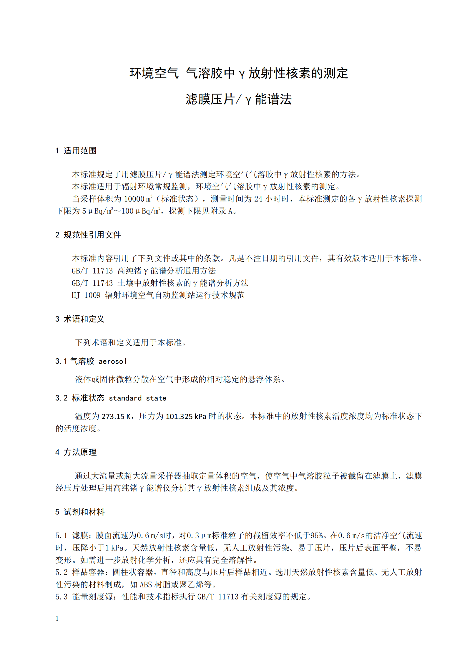 本標(biāo)準(zhǔn)規(guī)定了用濾膜壓片/γ能譜法測(cè)定環(huán)境空氣氣溶膠中γ放射性核素的方法。