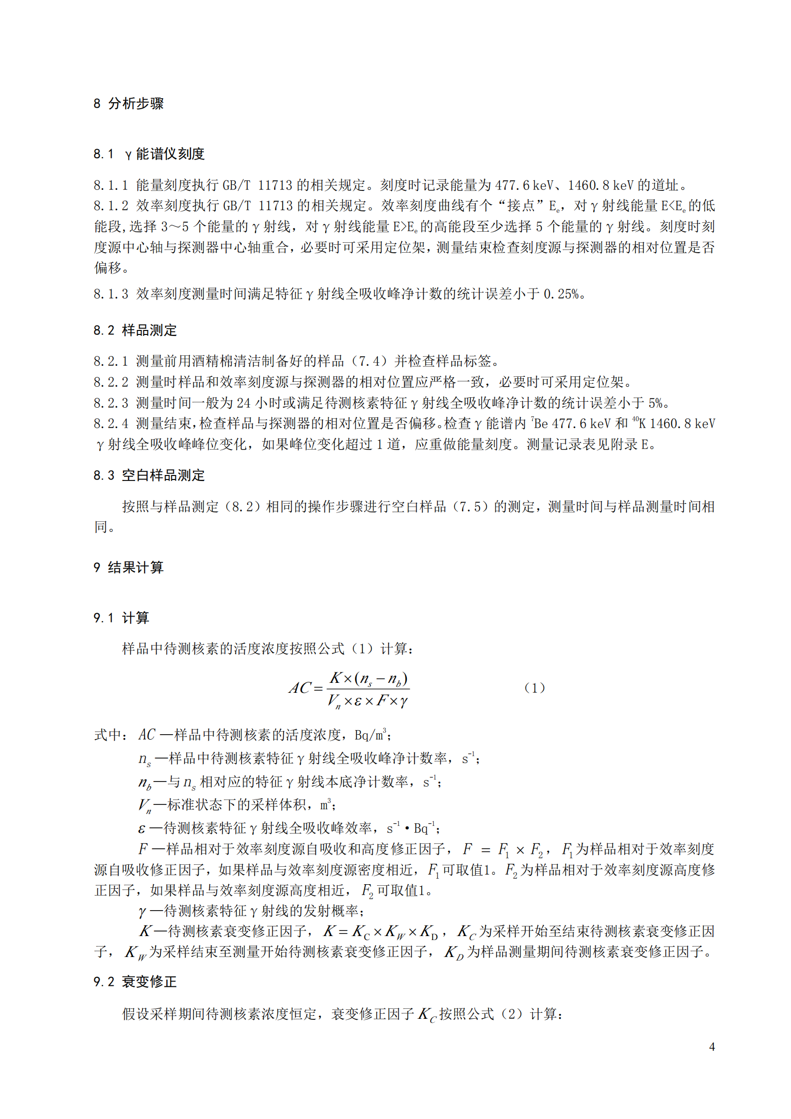 本標(biāo)準(zhǔn)中的放射性核素活度濃度均為標(biāo)準(zhǔn)狀態(tài)下 的活度濃度。