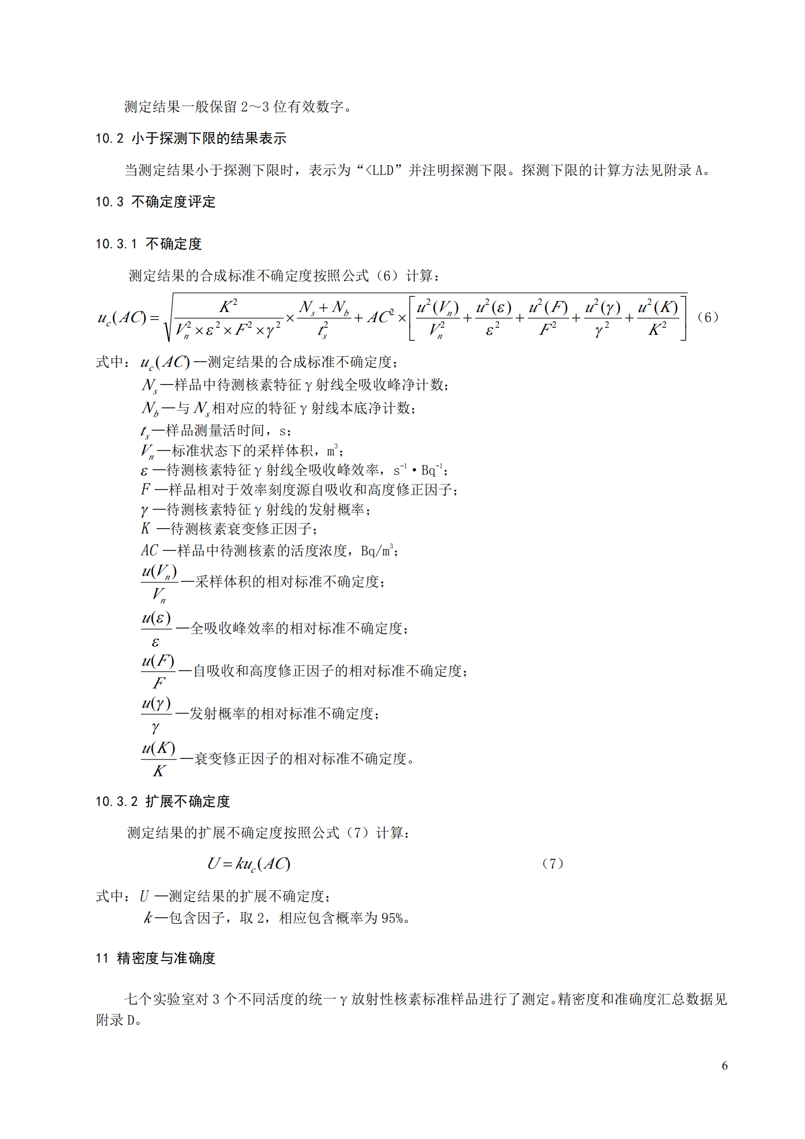 當(dāng)采樣體積為 10000 m 3(標(biāo)準(zhǔn)狀態(tài)),測(cè)量時(shí)間為 24 小時(shí)時(shí),本標(biāo)準(zhǔn)測(cè)定的各γ放射性核素探測(cè) 下限為 5μBq/m 3~100μBq/m 3,探測(cè)下限見(jiàn)附錄 A。