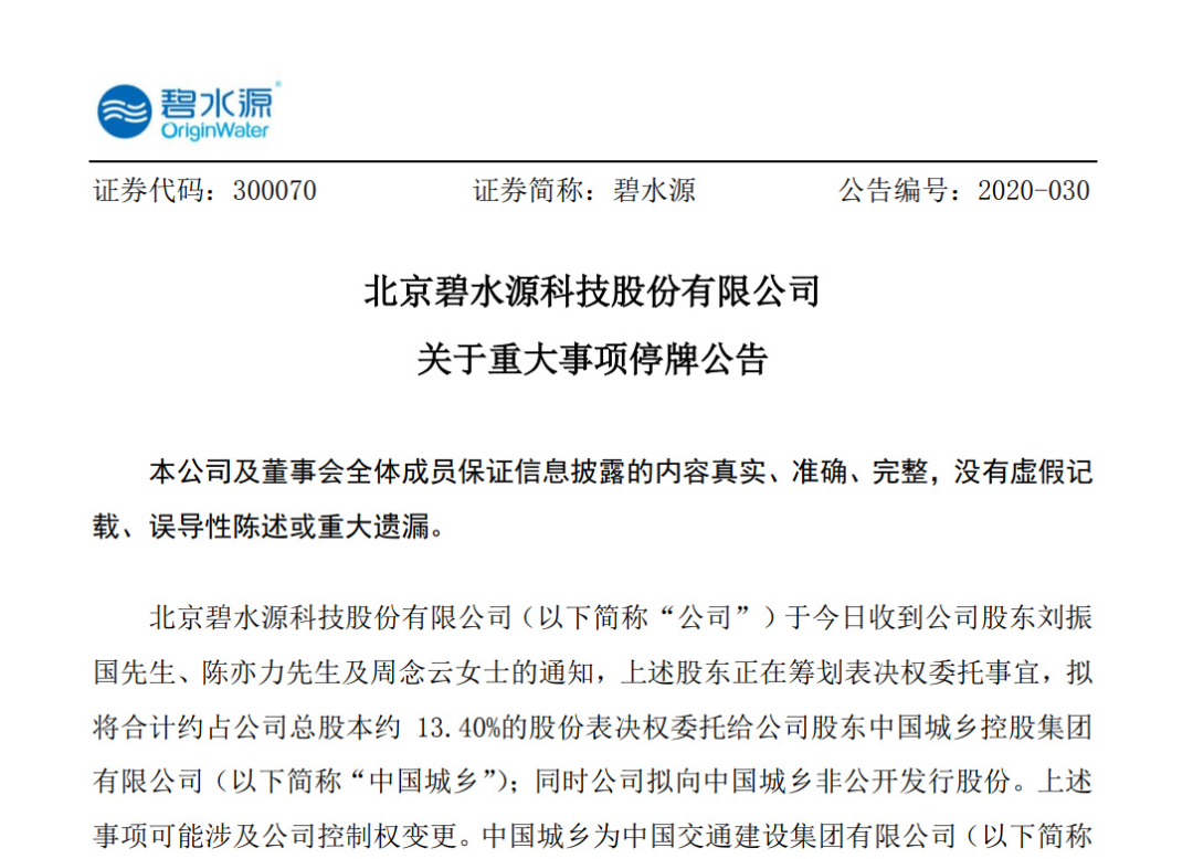 環(huán)保產(chǎn)業(yè)的2020,是以一大波企業(yè)敲鐘上市開始的。1月6日,新年“上市第一鐘”在深交所敲響,A股市場迎來了“環(huán)衛(wèi)第一股”僑銀環(huán)保。這家以環(huán)衛(wèi)起家的公司,不久后把名字改成了“僑銀城市管理股份有限公司”,被大家戲稱“不做環(huán)衛(wèi)改城管了”。1月14日,南京萬德斯又在上交所科創(chuàng)板上市。緊接著,1月15日,北控城市資源在香港聯(lián)交所主板掛牌上市,成功登陸國際資本市場。誰也沒有想到,2020年會成為環(huán)保企業(yè)IPO上市的一個“大年”。到了年底總結(jié)的時候,這一年竟然有28家環(huán)保企業(yè)上市成功,創(chuàng)下了一個歷史記錄。而這一切,都與資本市場的“注冊制改革”有著密切關(guān)系。1月12日至13日,一年一度的全國生態(tài)環(huán)境保護(hù)工作會議在北京召開,提出了2020年的十二大任務(wù)。歲末年初,各種各樣的會議、論壇比較多,各種言論也是百花齊放。吳舜澤說,環(huán)保成了一個“筐”,地方打著環(huán)保的旗號,把不好說的因素都放這個“筐”里。誰能想到,再過幾個月,吳舜澤自己也將離開深耕多年的環(huán)保系統(tǒng),成為了地方政府的副書記。在他之前,已經(jīng)有一大批省區(qū)市的生態(tài)環(huán)境廳廳長集中履職了,環(huán)保履歷成了任職主政的加分項。比如從四川省生態(tài)環(huán)境廳廳長調(diào)任重慶市大足區(qū)委區(qū)委書記的于會文。1月25號,是中國人民的傳統(tǒng)節(jié)日新春佳節(jié)。但令人沒想到的是,與之同時到來的,卻是百年難遇的新冠疫情。環(huán)保企業(yè)很快行動起來了,高能環(huán)境火速馳援火神山醫(yī)院建設(shè)。興源環(huán)境也接到了參建火神山醫(yī)院污水處理系統(tǒng)的任務(wù)。 新興鑄管收到了醫(yī)院的緊急訂單,大年初一早上就要送到。盈峰環(huán)境也捐了15輛清潔消毒車,還有15噸的消毒劑。非常時刻,眾多環(huán)?!澳嫘姓摺壁s赴抗疫一線,更多的環(huán)保人則堅守崗位,默默為抗擊疫情貢獻(xiàn)著一份力量。進(jìn)入二月,疫情仍在繼續(xù),有關(guān)疫情的謠言也塵囂甚上。有人說,政府要開始用飛機(jī)撒消毒藥水了,連時間都傳得有鼻子有眼——明早四點。不過,也有的地方確實出現(xiàn)過消毒過度的情況。比如重慶這個小區(qū),竟然引入種豬消毒裝置,把進(jìn)入小區(qū)的人們都象豬一樣噴灑一遍。為此,專家不得不出來解釋:沒有受到污染的區(qū)域是不需要消毒的,消毒劑殘留也會污染環(huán)境。最讓污水處理廠擔(dān)心的是這樣一則新聞——新冠病毒可以通過糞便傳播!環(huán)境部連夜發(fā)文,要規(guī)范醫(yī)療污水的殺菌消毒要求,防止新冠病毒通過糞便傳播。疫情期間,工廠停工,工人放假,可霧霾天氣還是如影而至,這讓很多人質(zhì)疑,過去關(guān)于霧霾的成因是不是找錯了?對此,專家的答復(fù)是:雖然工業(yè)企業(yè)、施工工地和重型載貨車等與平常相比有所減少,但煙花爆竹的污染量卻增大了。還有,排放量占比較大的重污染行業(yè),變化也不大。甭管重污染行業(yè)變化大不大,環(huán)保行業(yè)的變化確實夠大的,有統(tǒng)計顯示:疫情期間,我國城市環(huán)衛(wèi)作業(yè)量較平時至少增加一倍以上!但與此同時,由于封城、封路等原因,環(huán)保企業(yè)的運(yùn)行則受到很大影響。項目不能開工,設(shè)備沒法生產(chǎn),員工沒法上班,幾乎所有事情都停頓了!受疫情影響,第21屆中國環(huán)博會IE expo China 2020也被迫延期。就連中國環(huán)博會的母展——全球最大環(huán)保展慕尼黑IFAT,也宣布推遲了。好在,進(jìn)入2月,各地陸陸續(xù)續(xù)出臺了一些復(fù)產(chǎn)復(fù)工的政策,環(huán)保項目也開始慢慢招標(biāo)了。3月,疫情陰影仍未散去,中辦、國辦卻突然發(fā)布了一個好消息——《關(guān)于構(gòu)建現(xiàn)代環(huán)境治理體系的指導(dǎo)意見》在這份文件里,第一次詳細(xì)描述了未來環(huán)境治理體系的構(gòu)架,比如監(jiān)管體系、市場體系、信用體系、法律政策體系什么的。如果能夠順利實施,那么到2025年,中國的環(huán)境治理將迎來極大變化。中節(jié)能連續(xù)出手,相繼收購了國禎環(huán)保和鐵漢生態(tài),一舉拿下兩家老牌環(huán)保公司。雖然是視頻簽署股權(quán)轉(zhuǎn)讓協(xié)議,但架勢一點也不能含糊,中節(jié)能董事長宋鑫、董事長余紅輝,國禎集團(tuán)董事會主席李煒、總裁李松珊等都紛紛出席。除了國禎,碧水源也發(fā)布公告,中國城鄉(xiāng)將擁有自己23.50%的表決權(quán),公司的實控權(quán)或?qū)⒆兏?/span>3月底,環(huán)評領(lǐng)域爆出重大新聞,深圳灣航道疏浚工程(一期)環(huán)評報告書被指抄襲。一份深圳灣的環(huán)評報告,居然出現(xiàn)了幾百公里以外的“湛江”字樣,環(huán)評“抄作業(yè)”竟然連地名都不帶改的。其中折射出來的環(huán)評工作的潦草塞責(zé),讓人瞠目結(jié)舌。3月27日,官方給出回應(yīng),將終止該項目的環(huán)評公示,并責(zé)成環(huán)評單位——中國科學(xué)院南海海洋研究所重新組織環(huán)評。時間來到4月,復(fù)產(chǎn)復(fù)工的腳步明顯加快。三峽系斥資5億舉牌上海環(huán)境,持股增至5%,直逼第二大股東的位置。另一邊,中鐵水務(wù)在西安成立,注冊資本金