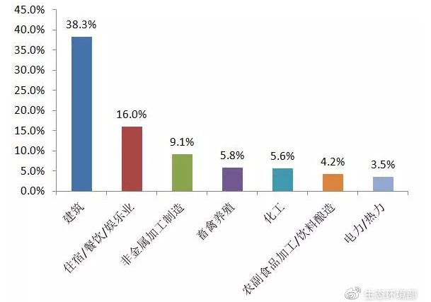 從行業(yè)類(lèi)型來(lái)看,11月公眾反映最集中的行業(yè)為建筑業(yè),占38.3%;其次為住宿餐飲娛樂(lè)業(yè)和非金屬加工制造業(yè),分別占16.0%和9.1%。其中,建筑業(yè)占比比10月同類(lèi)占比減少2.6%;住宿餐飲娛樂(lè)業(yè)舉報(bào)占比比10月同類(lèi)占比增加0.9%,非金屬加工制造業(yè)舉報(bào)占比與10月同類(lèi)占比持平。