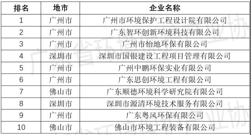 廣東省環(huán)境評(píng)估服務(wù)企業(yè)TOP10排行榜