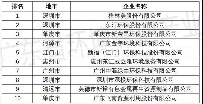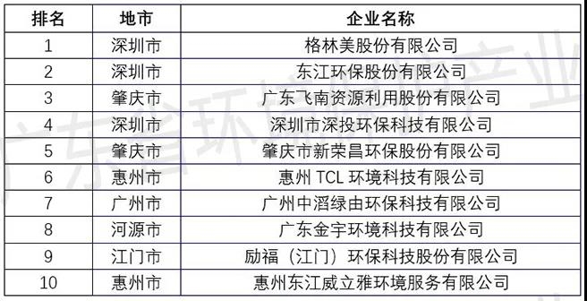 廣東省固體廢物治理服務(wù)企業(yè)TOP10排行榜