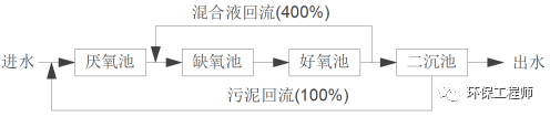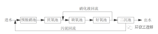 1962年,Ludzack和Ettinger首次提出利用進(jìn)水中的可生物降解有機(jī)物作為碳源的前置反硝化工藝,解決了碳源不足的問(wèn)題,但由于兩個(gè)反應(yīng)器間的液體交換缺乏控制,影響脫氮效果。(該工藝缺少描述,筆者也不知道具體的工藝流程)