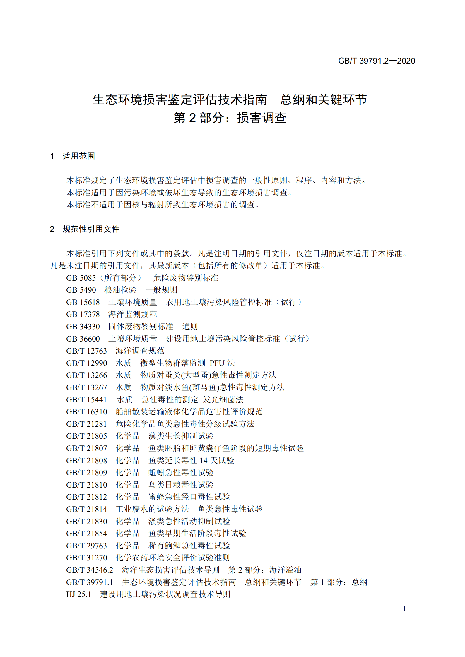 一、《生態(tài)環(huán)境損害鑒定評(píng)估技術(shù)指南 總綱和關(guān)鍵環(huán)節(jié) 第1部分:總綱》(GB/T 39791.1-2020)