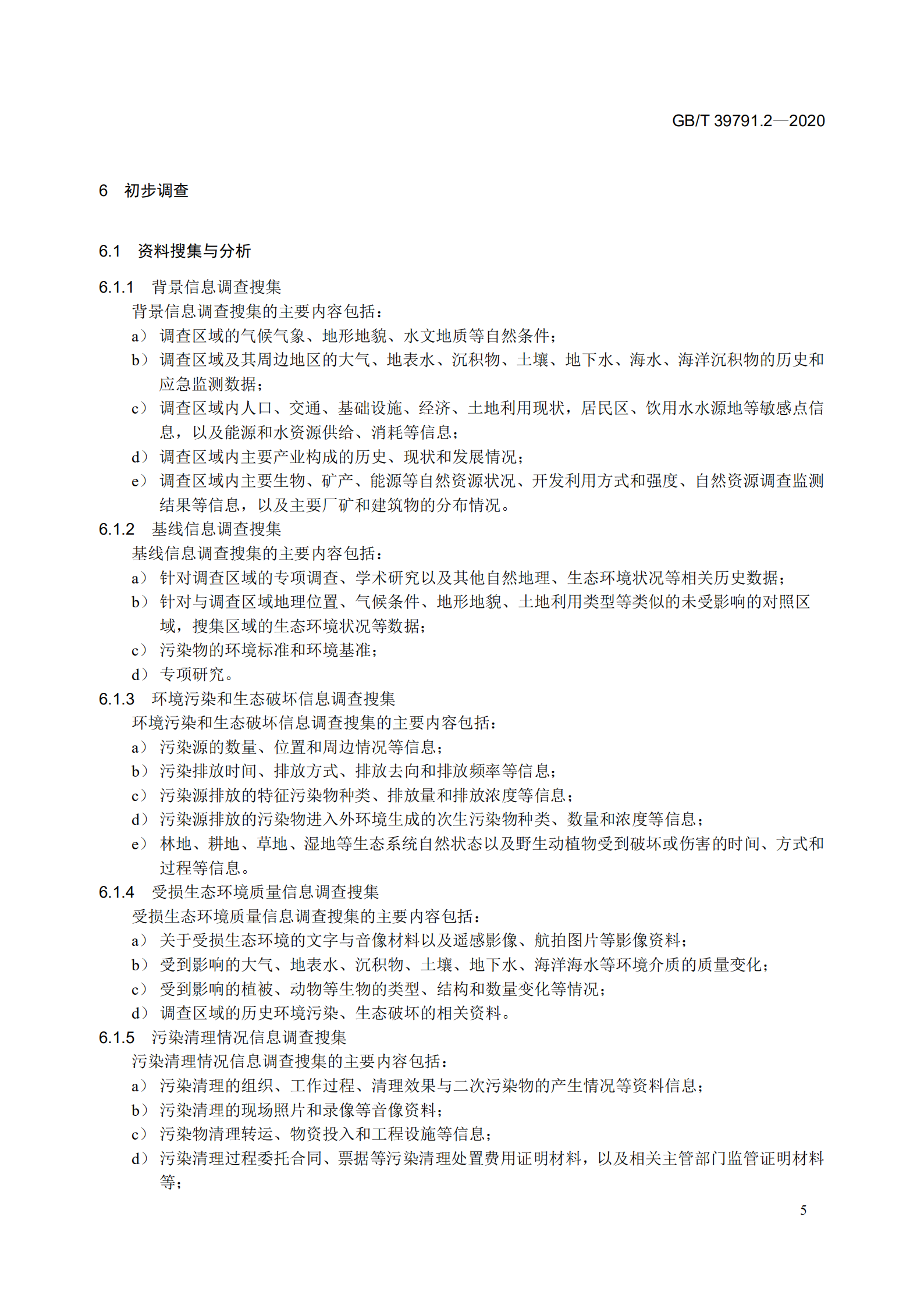 二、《生態(tài)環(huán)境損害鑒定評(píng)估技術(shù)指南 總綱和關(guān)鍵環(huán)節(jié) 第2部分:損害調(diào)查》(GB/T 39791.2-2020)