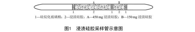 采樣時,打開浸漬硅膠采樣管(4.21)兩端,將采樣管B端與空氣采樣器(5.1)進(jìn)氣口連接,以0.5L/min~1.0L/min 流量采樣,采樣體積為60L。