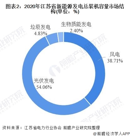 從新能源發(fā)電結(jié)構(gòu)來看,截至2020年11月,江蘇省風(fēng)電裝機容量1196.47萬千瓦,占新能源發(fā)電總裝機容量的38.71%;太陽能發(fā)電裝機容量1670.63萬千瓦,占新能源發(fā)電總裝機容量的54.06%;垃圾發(fā)電裝機容量149.38萬千瓦,占新能源發(fā)電總裝機容量的4.83%;生物質(zhì)發(fā)電裝機容量74.12萬千瓦,占新能源發(fā)電總裝機容量的2.40%。