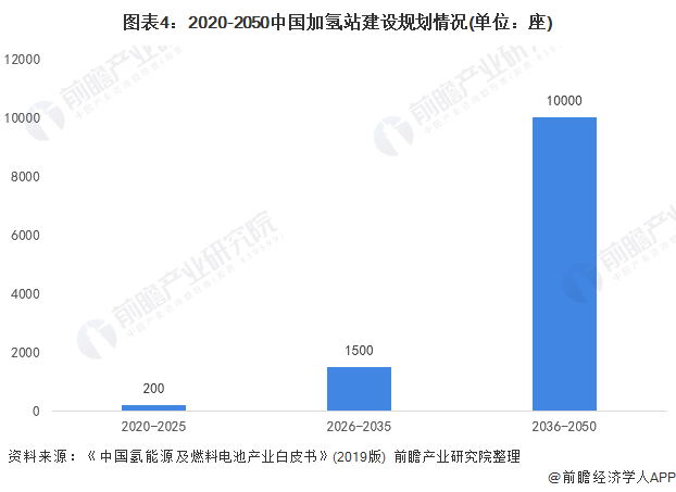 根據(jù)中國氫能聯(lián)盟發(fā)布的《中國氫能源及燃料電池產(chǎn)業(yè)白皮書》(2019版)資料顯示,氫能將成為中國能源體系的重要組成部分,預(yù)計(jì)到2035年,中國加氫站達(dá)到1500座,到2050年全國加氫站達(dá)到10000座以上。