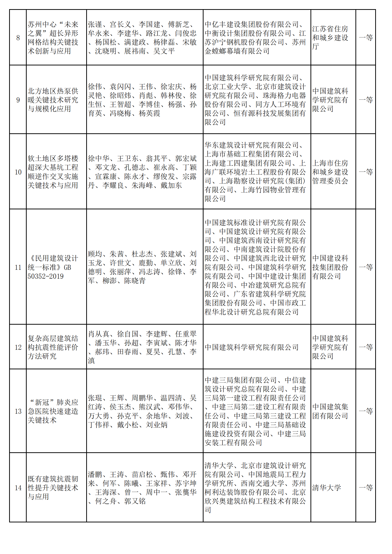 2020年度華夏建設(shè)科學(xué)技術(shù)獎(jiǎng)評審、公示工作已經(jīng)結(jié)束。經(jīng)華夏建設(shè)科學(xué)技術(shù)獎(jiǎng)勵(lì)委員會(huì)審核批準(zhǔn),2020年度授獎(jiǎng)項(xiàng)目共198項(xiàng),其中一等獎(jiǎng)29項(xiàng)、二等獎(jiǎng)60項(xiàng)、三等獎(jiǎng)109項(xiàng),現(xiàn)予公告。