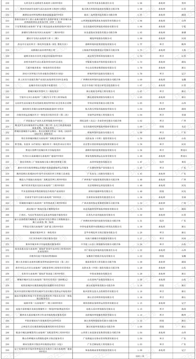 其中,超過(guò)百億的中標(biāo)項(xiàng)目有4個(gè),分別為東莞市各鎮(zhèn)街東江下游片區(qū)水污染綜合治理工程污水收集系統(tǒng)完善工程PPP項(xiàng)目(146.38億元)、唐山全域治水清水潤(rùn)城縣區(qū)工程PPP項(xiàng)目(5個(gè)標(biāo)段共計(jì)118億元)、武漢長(zhǎng)江新城起步區(qū)基礎(chǔ)設(shè)施工程PPP項(xiàng)目(117.2億元),和大澤湖生態(tài)智慧城綜合開發(fā)建設(shè)項(xiàng)目社會(huì)投資合作者采購(gòu)項(xiàng)目(100億元)。