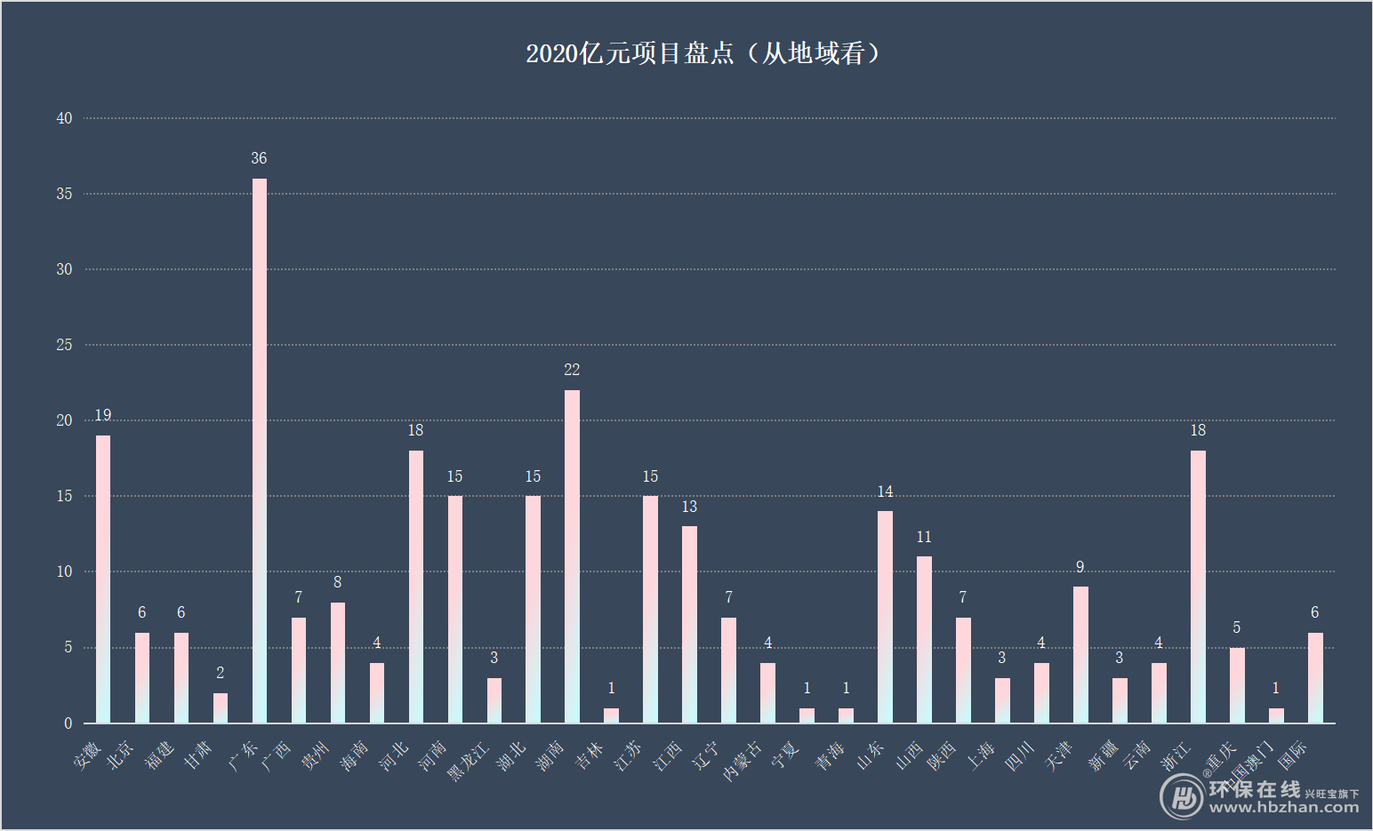 從地區(qū)來(lái)看:廣東以項(xiàng)目計(jì)數(shù)36個(gè)位列榜首。