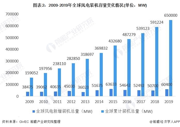 風(fēng)能作為一種新型的綠色能源,在全球能源結(jié)構(gòu)中逐漸占據(jù)重要地位。目前,利用風(fēng)力發(fā)電已逐漸成為風(fēng)能利用的主要形式,利用風(fēng)力發(fā)電非常環(huán)保,且風(fēng)能資源總量巨大,因此日益受到世界各國(guó)的重視。近年來,全球風(fēng)電市場(chǎng)穩(wěn)定發(fā)展。