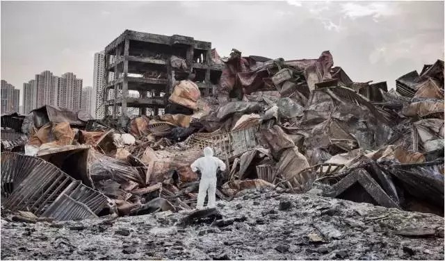 為照顧當(dāng)?shù)氐膭游镆廊蛔≡诟u的中村先生這個是在福島目前生活的唯一的日本人——中村先生,他是全世界輻射量最高的人之一??赡鼙炔涣饲袪栔Z貝利,但他是日本最高的。我為了取得他的信任,跟他住了兩天,通過手機(jī)免提翻譯來采訪他。他非常信任我,他告訴我說你在我這沒有問題,但如果你被核輻射以后的所有后果我不承擔(dān)責(zé)任。這個老人現(xiàn)在一直在日本這個地方照顧動物,我看到他跟動物在一起的時候,我覺得他跟動物那種情感、那種自然是無與倫比的。當(dāng)然作為記者,我們有很多不能言說的東西,有很多報道的禁區(qū),我們是怎么去應(yīng)對的呢?天津大爆炸這張照片大家可能知道,(獲得了)今年的荷賽獎,包括一些國內(nèi)的大獎。這是我第三天去拍的一張照片。