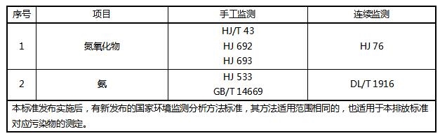 監(jiān)測(cè)分析方法:氮氧化物的監(jiān)測(cè)要求應(yīng)按照HJ/T 397和HJ 75的規(guī)定執(zhí)行,氨逃逸的監(jiān)測(cè)要求按照HJ 2040的規(guī)定執(zhí)行。監(jiān)測(cè)分析方法見表2。