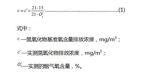 氮氧化物排放濃度應(yīng)按公式(1)折算為基準(zhǔn)氧含量15%時(shí)的排放濃度作為達(dá)標(biāo)判定的依據(jù)。
