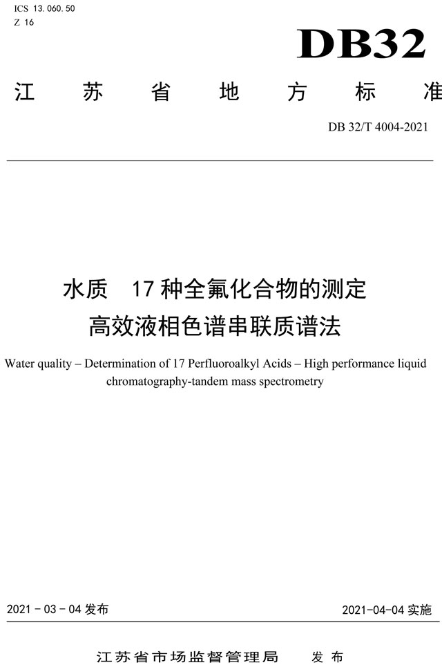 江蘇地方標(biāo)準(zhǔn):水質(zhì) 17種全氟化合物的測定高效液相色譜串聯(lián)質(zhì)譜法