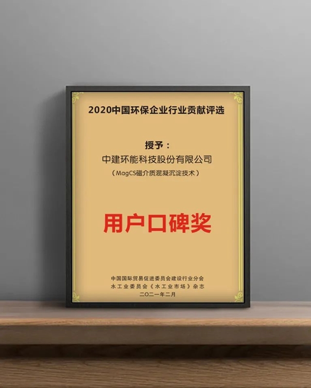 近日,在北京召開的村鎮(zhèn)環(huán)境科技產(chǎn)業(yè)聯(lián)盟年度總結(jié)展望會暨2021年度(第15屆)水處理行業(yè)熱點技術(shù)論壇大會上,中建環(huán)能MagCS磁介質(zhì)混凝沉淀技術(shù)憑借在水處理領(lǐng)域持續(xù)開拓創(chuàng)新,贏得了客戶好評,獲得了良好的經(jīng)濟(jì)效益和環(huán)境效益,被授予“用戶口碑獎”。