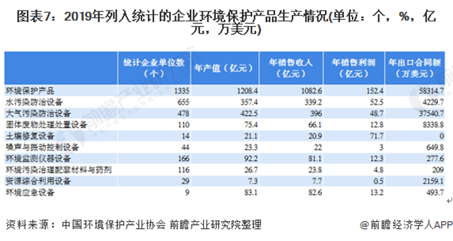 在《2020環(huán)保產(chǎn)業(yè)發(fā)展?fàn)顩r報(bào)告》中,2019年納入統(tǒng)計(jì)的環(huán)保設(shè)備市場(chǎng)共有1583家企業(yè);年產(chǎn)值為1018.60億元,銷售收入和銷售利潤(rùn)分別為949.10億元和135.80億元,實(shí)現(xiàn)出口合同額51245.60萬(wàn)美元。
