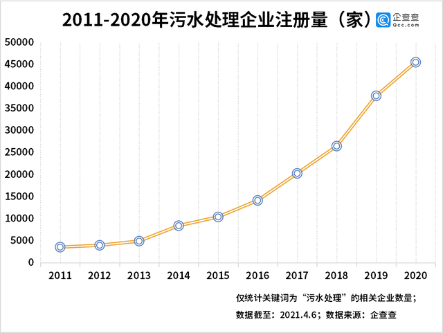 原標(biāo)題:企查查數(shù)據(jù):2020年我國污水處理相關(guān)企業(yè)注冊量同比增長20%