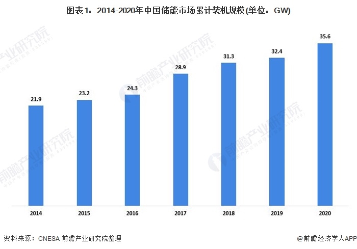 根據(jù)CNESA不完全統(tǒng)計(jì),截至2020年底,中國(guó)已投運(yùn)儲(chǔ)能項(xiàng)目累計(jì)裝機(jī)規(guī)模為35.6GW,占全球市場(chǎng)總規(guī)模的18.6%,同比增長(zhǎng)9.8%,漲幅比2019年同期增長(zhǎng)6.2個(gè)百分點(diǎn)。