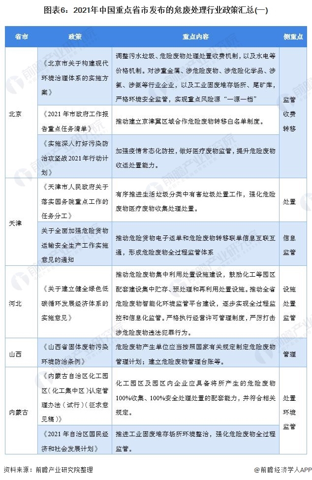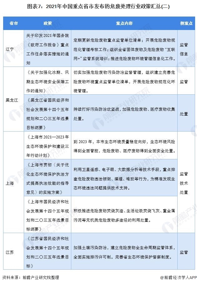 重點(diǎn)省市危廢處理最新推動政策匯總