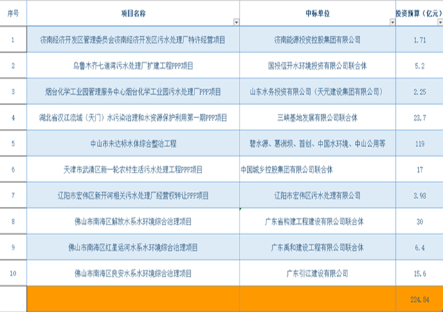 6月以來,10個(gè)項(xiàng)目,投資額超224億,污水處理市場(chǎng)前景可觀。