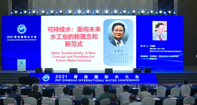 ▲國際水協(xié)會(huì)(IWA)理事、國家城市非常規(guī)水資源開發(fā)利用國際科技合作基地主任王曉昌作主題為《可持續(xù)水:面向未來水工業(yè)的新理念和新范式》的分享
