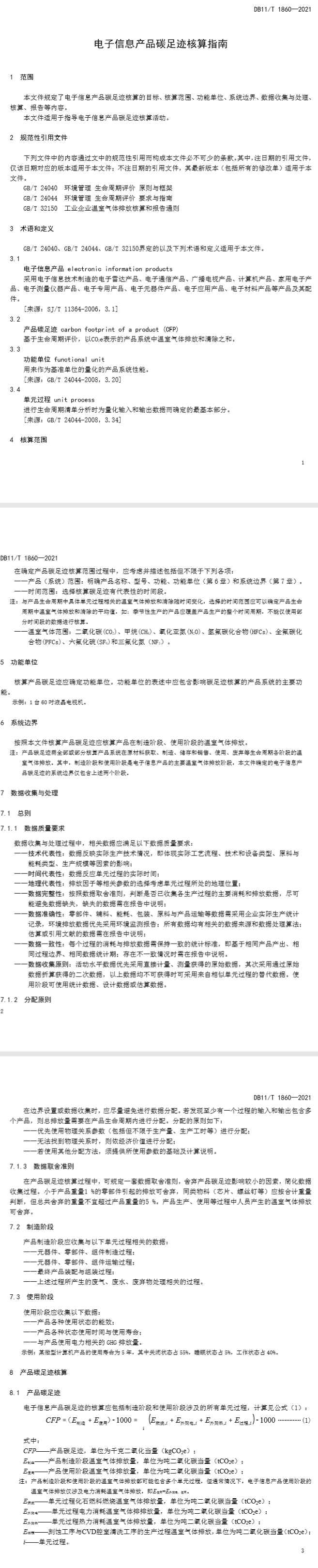 本文件規(guī)定了電子信息產(chǎn)品碳足跡核算的目標(biāo)、核算范圍、功能單位、系統(tǒng)邊界、數(shù)據(jù)收集與處理、核算、報(bào)告等內(nèi)容。