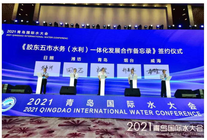 加快膠東經(jīng)濟圈一體化發(fā)展是山東省委、省政府推動全省區(qū)域協(xié)調(diào)發(fā)展作出的重大戰(zhàn)略部署。膠東五市水務(wù)(水利)一體化發(fā)展是全省經(jīng)濟社會建設(shè)的重要組成部分,青島、煙臺、濰坊、威海、日照五市水務(wù)(水利)局為統(tǒng)籌推進區(qū)域重大引調(diào)水工程開工建設(shè),協(xié)調(diào)解決跨區(qū)域水資源、水生態(tài)、水安全等重點難點問題,打造區(qū)域“五水共治”的膠東樣板,聯(lián)合擬制了《膠東五市水務(wù)(水利)一體化發(fā)展合作備忘錄》。大會現(xiàn)場舉行了合作備忘錄簽約儀式,開展膠東五市水務(wù)合作,建立膠東五市水務(wù)“朋友圈”。