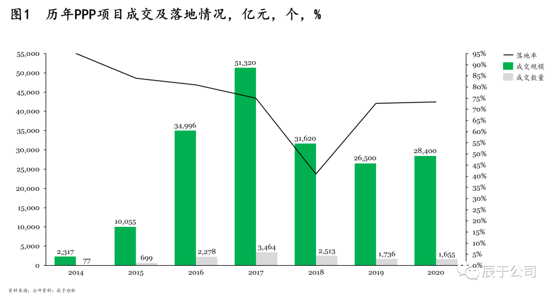 從商業(yè)模式來(lái)看,分水嶺之前,PPP模式推行正處于火熱狀態(tài),政府需求得以大量釋放,民營(yíng)企業(yè)也找到了“用武之地”,BOT、TOT等模式也廣泛推行;而分水嶺之后,PPP模式遇冷(見(jiàn)圖1),商業(yè)模式再次變得不明朗,企業(yè)發(fā)展陷入迷茫。