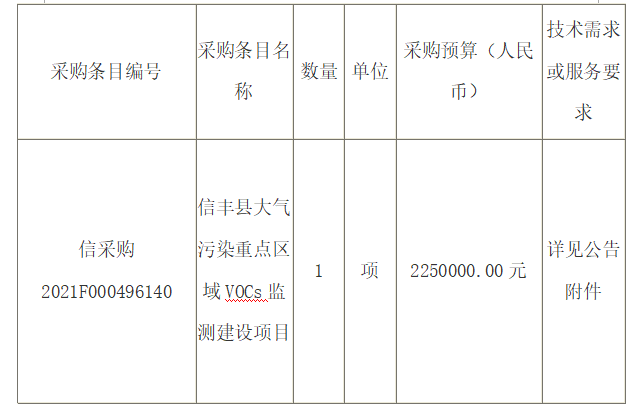 原標(biāo)題:江西新聯(lián)招標(biāo)咨詢有限公司關(guān)于江西省贛州市信豐生態(tài)環(huán)境局信豐縣大氣污染重點(diǎn)區(qū)域VOCs監(jiān)測(cè)建設(shè)項(xiàng)目(項(xiàng)目編號(hào):JXXL2021-XF-G008)電子化公開招標(biāo)公告(不見面開標(biāo))