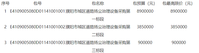 2、項目名稱:濮陽市城區(qū)道路揚塵治理設(shè)備采購