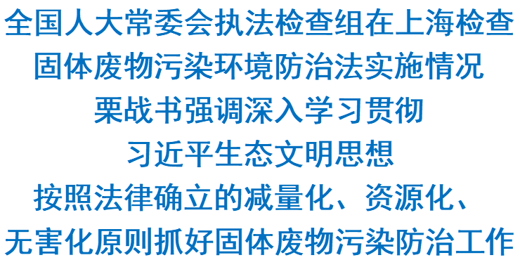 中共中央政治局常委、全國(guó)人大常委會(huì)委員長(zhǎng)栗戰(zhàn)書(shū)9月12日至14日率全國(guó)人大常委會(huì)執(zhí)法檢查組在上海檢查固體廢物污染環(huán)境防治法實(shí)施情況。他強(qiáng)調(diào),要深入學(xué)習(xí)貫徹習(xí)近平生態(tài)文明思想,按照法律確立的減量化、資源化、無(wú)害化原則抓好固體廢物污染防治工作。