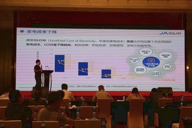 上海晶澳太陽(yáng)能科技有限公司技術(shù)中心主任張軍作《高功率高效組件技術(shù)及發(fā)展趨勢(shì)》的主旨演講。