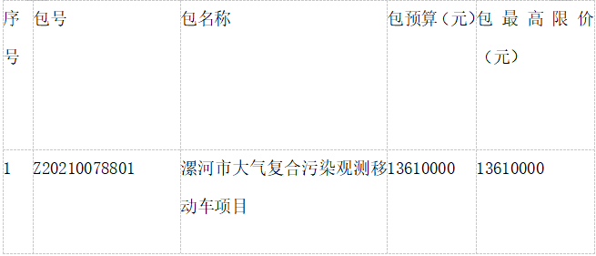 漯河市大氣復合污染觀測移動車項目招標項目的潛在投標人應在漯河市公共資源電子交易平臺獲取招標文件,并于2021年10月09日09時30分(北京時間)前遞交投標文件。
