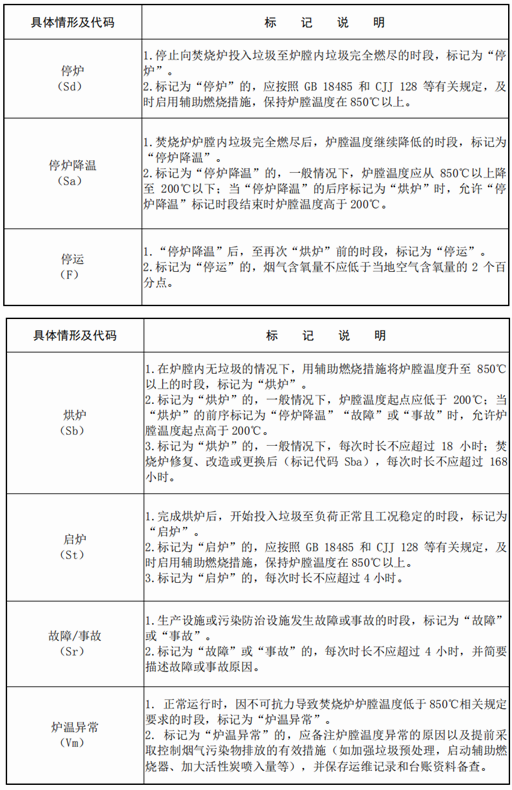 4.3 焚燒爐工況發(fā)生變化時,應(yīng)按照表 1 及時進(jìn)行焚燒爐工況標(biāo)記;未作標(biāo)記的,焚燒爐視為正常運(yùn)行。