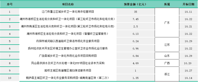 論規(guī)模,有預(yù)算35億的廣東江門市蓬江區(qū)城鄉(xiāng)環(huán)衛(wèi)一體化特許經(jīng)營項目;