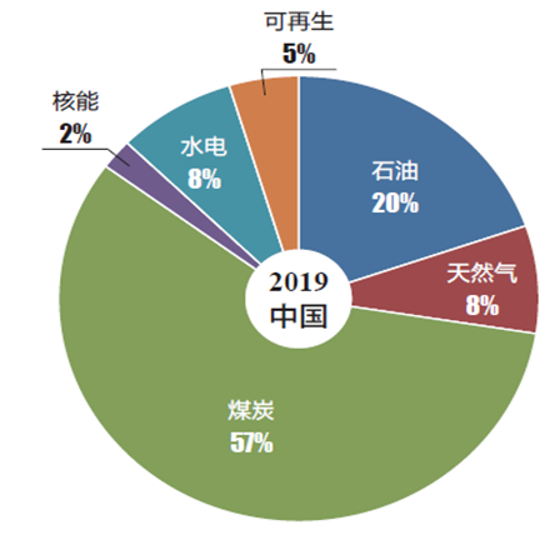 圖4:2019年中國一次能源結構。數(shù)據(jù)來源:《BP世界能源統(tǒng)計年鑒》