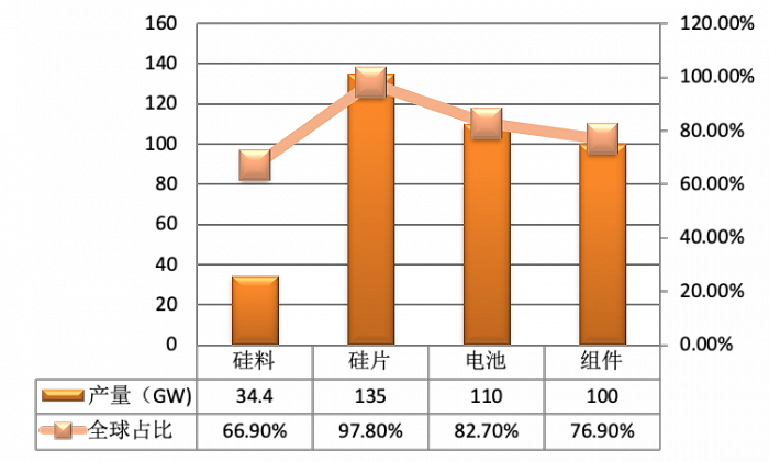圖3:2019年中國光伏產品產量及全球占比。數(shù)據(jù)來源:CPIA三、中國尚存哪些劣勢?