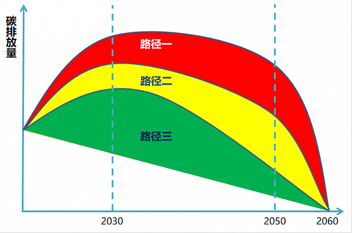 選項二:若美國釋放善意,前述的國際環(huán)境徹底改善,中國可以8-10%碳排放增長率,到2030年達峰,再緩慢下降,待2050年“碳中和”技術經濟可行后,開始快速下降?!半p控”寬而執(zhí)行。
