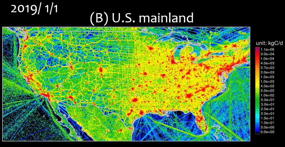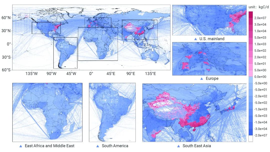 近實時全球碳地圖反映出人類活動變化導致的碳排放時空動態(tài)變化特征,包括氣候、季節(jié)、節(jié)假日甚至是新冠疫情對碳排放的實時動態(tài)變化。